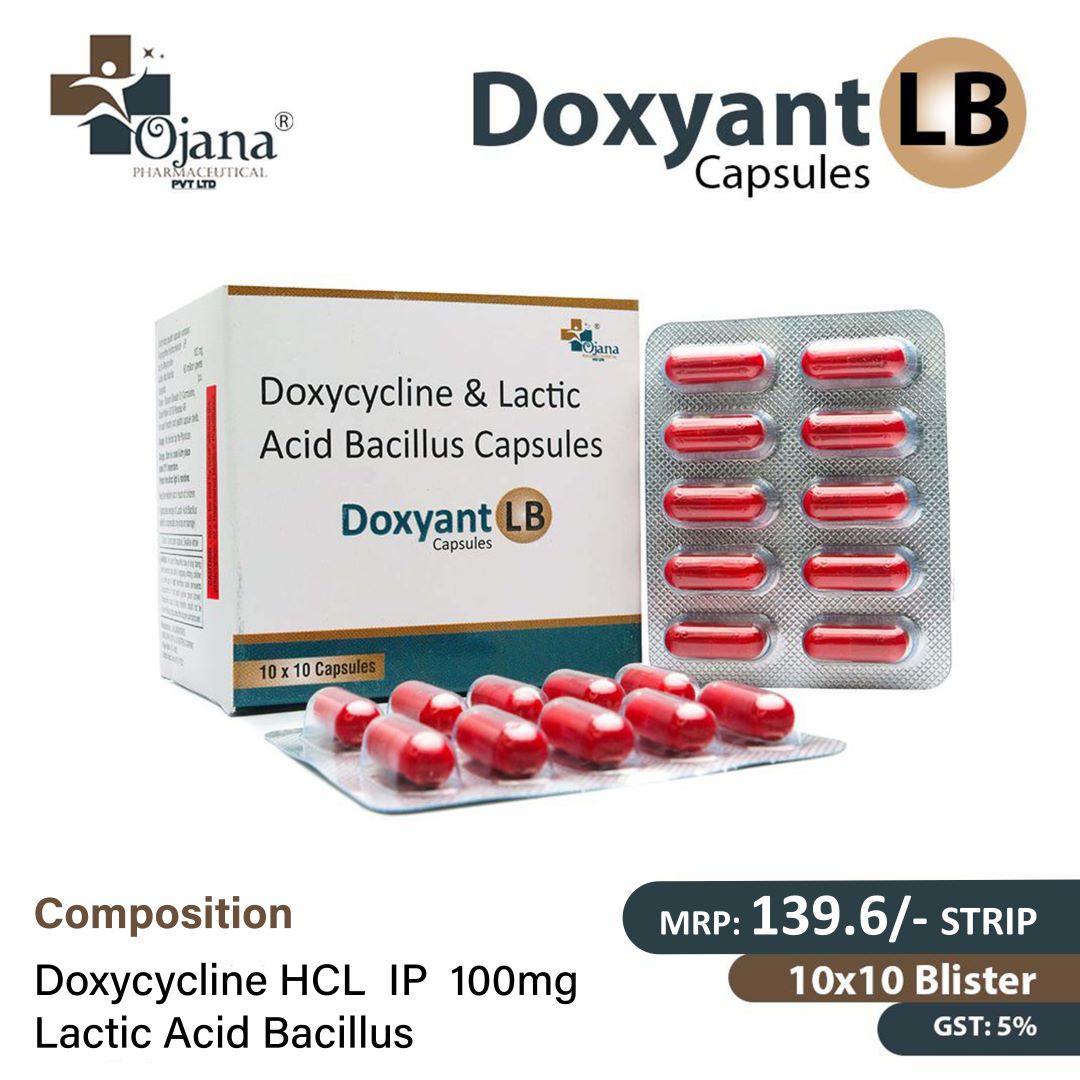 Doxycycline Hyclate I.P. 100mg + Lactic Acid Bacillus 60 Million Spores Capsules